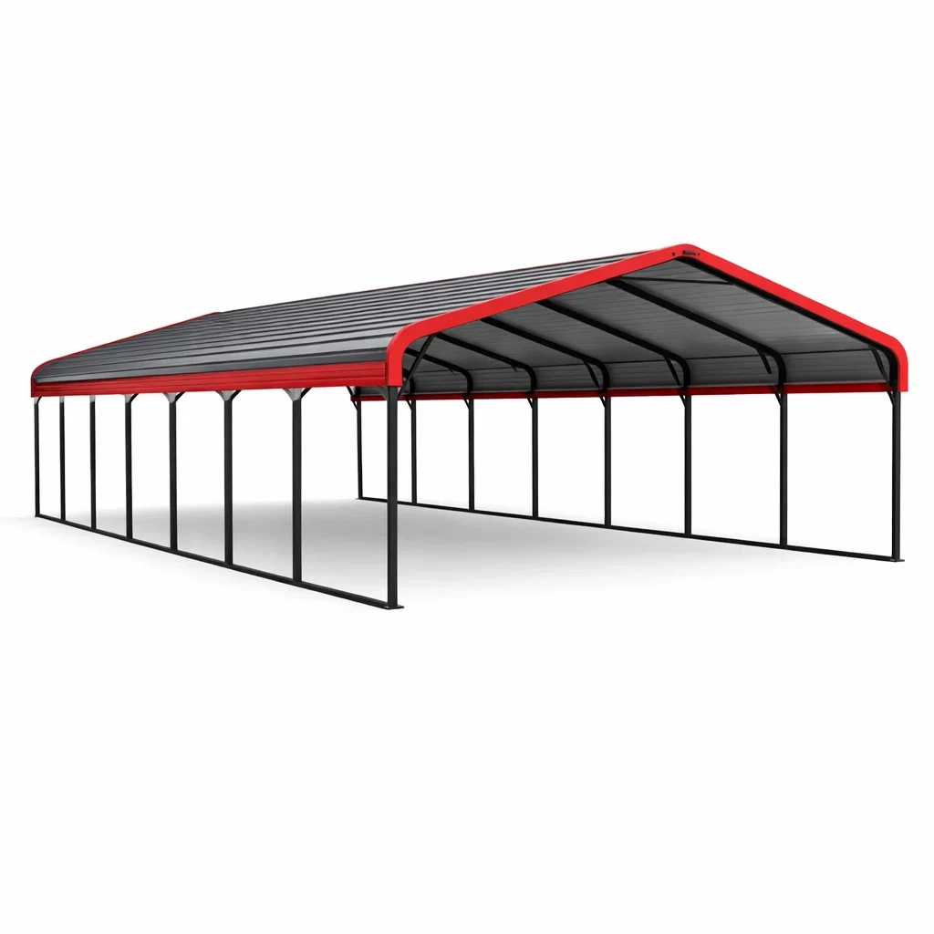 Abri voiture en métal rouge noir 6x3x2.6 m