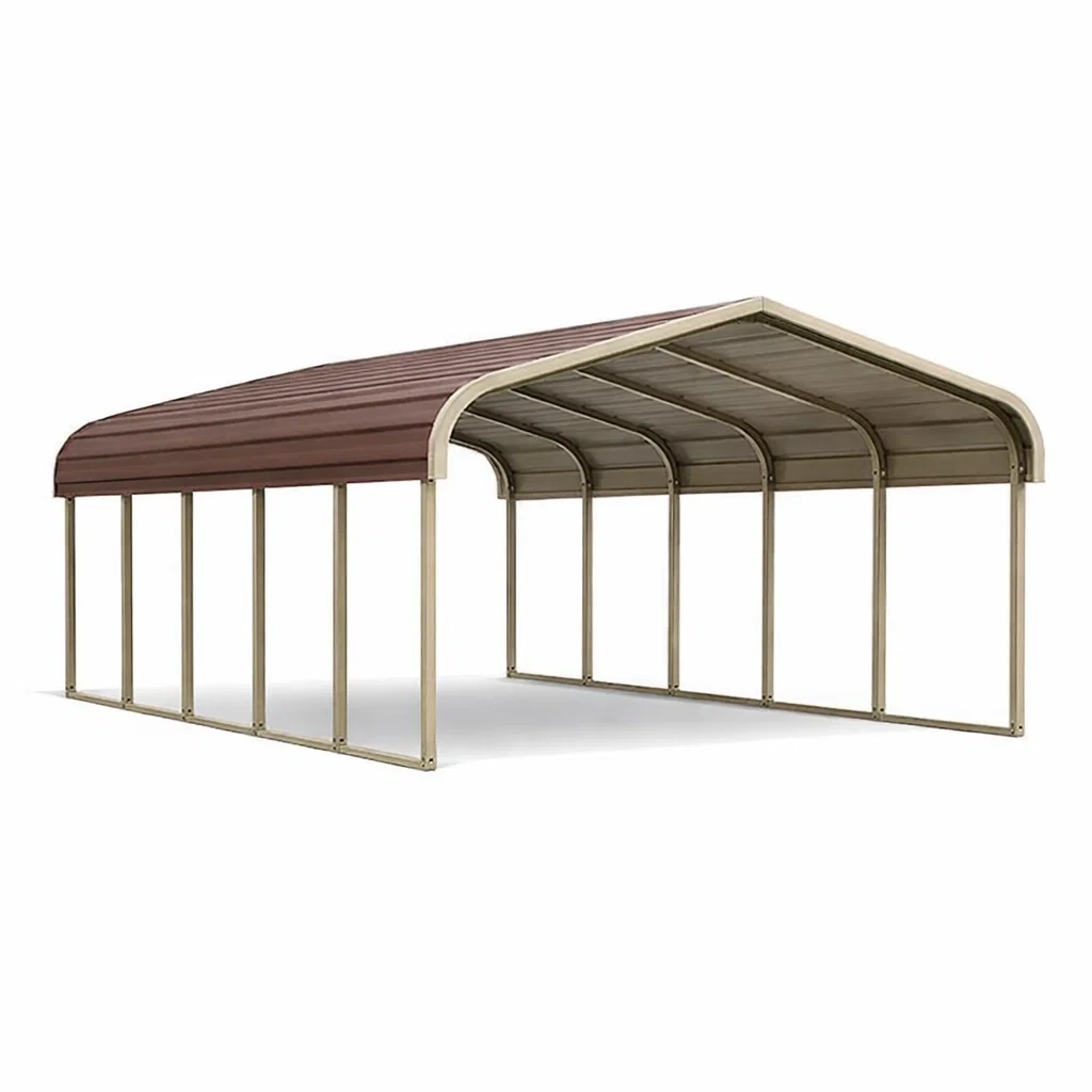 Abri voiture en acier galvanisé beige bordeaux 6x3x2.7 m
