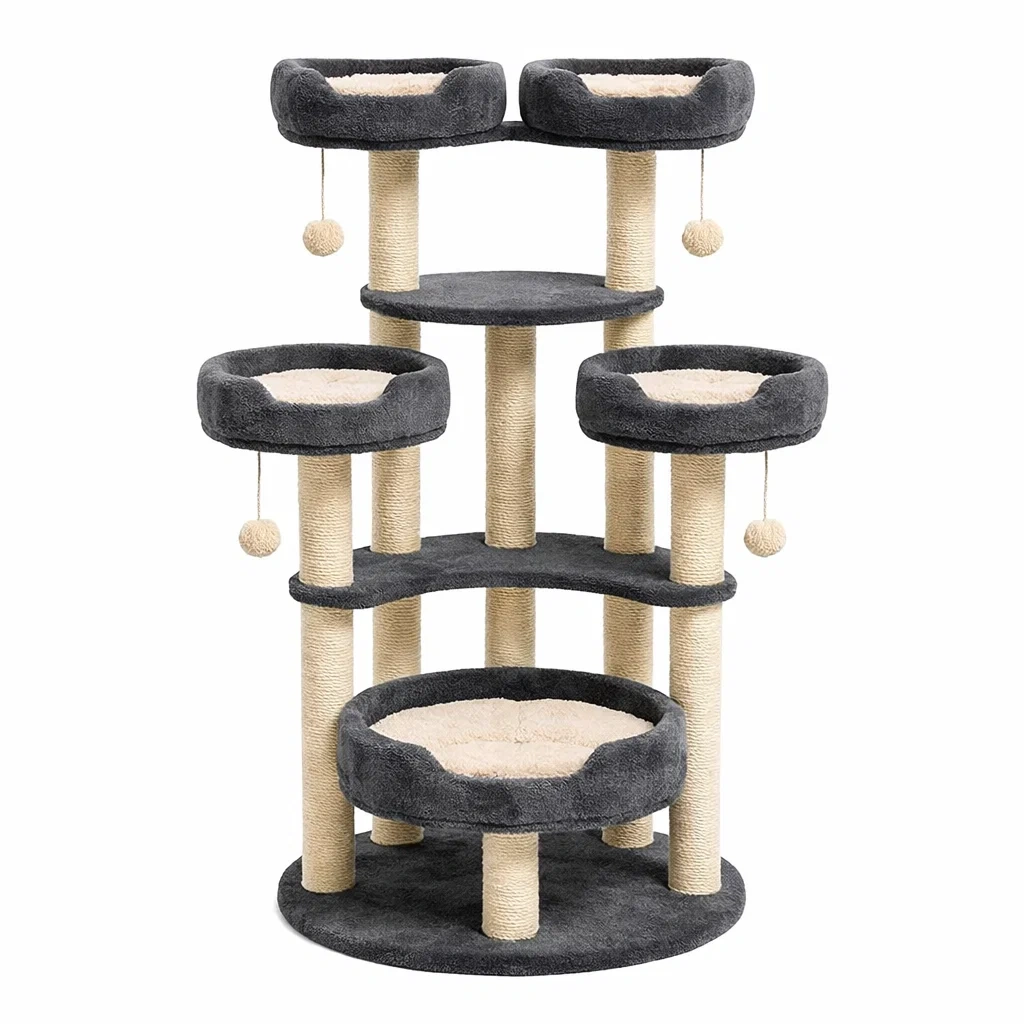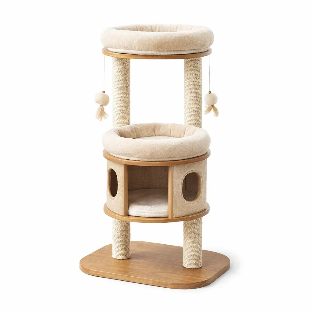 Arbre à chat en bois et sisal avec coussins en polyester beige