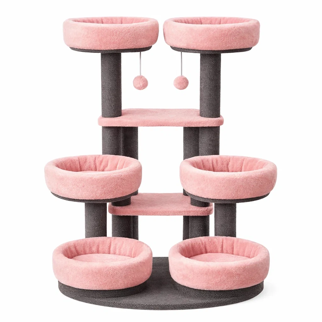 Arbre à chat multi niveaux en MDF et peluche rose et bleu 60x40x100 cm