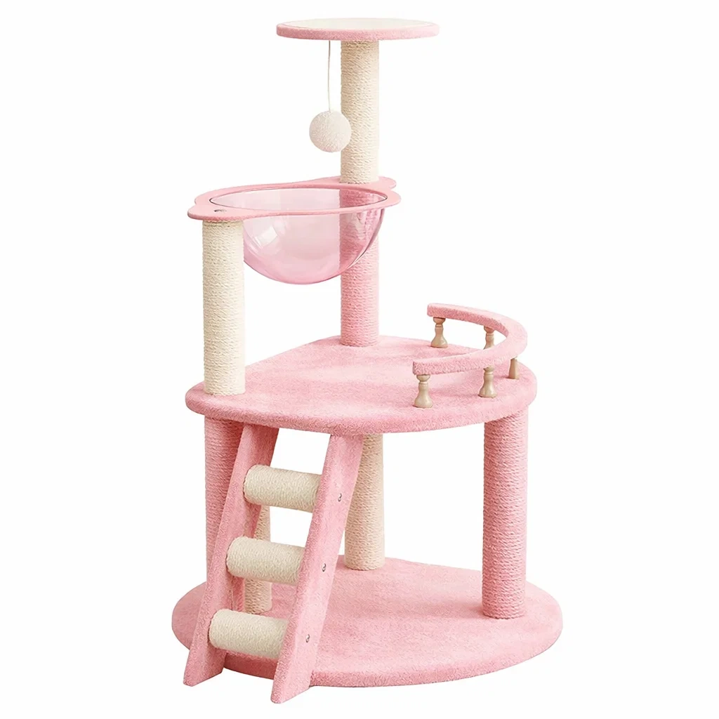 Arbre à chat en sisal et acrylique rose