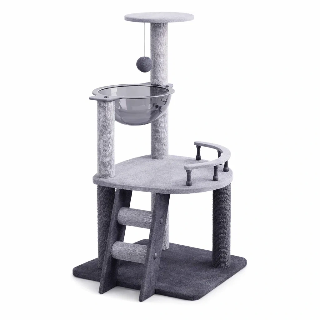 Arbre à chat en polyester et PVC transparent gris