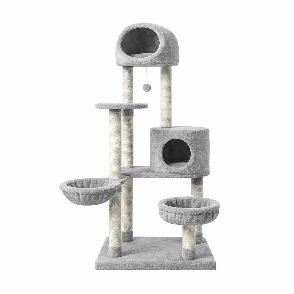 Arbre à chat en bois et polyester gris 100x50x140 cm