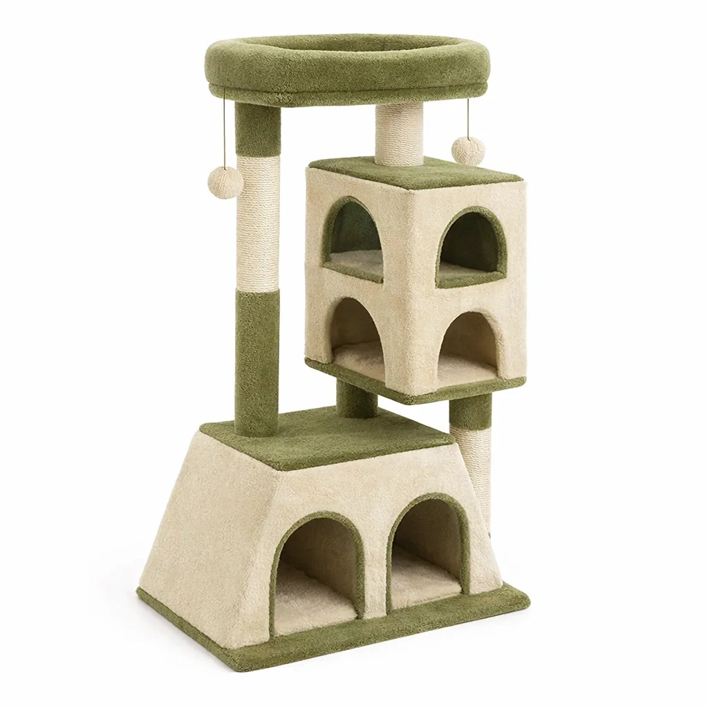 Arbre à chat en peluche et sisal beige vert