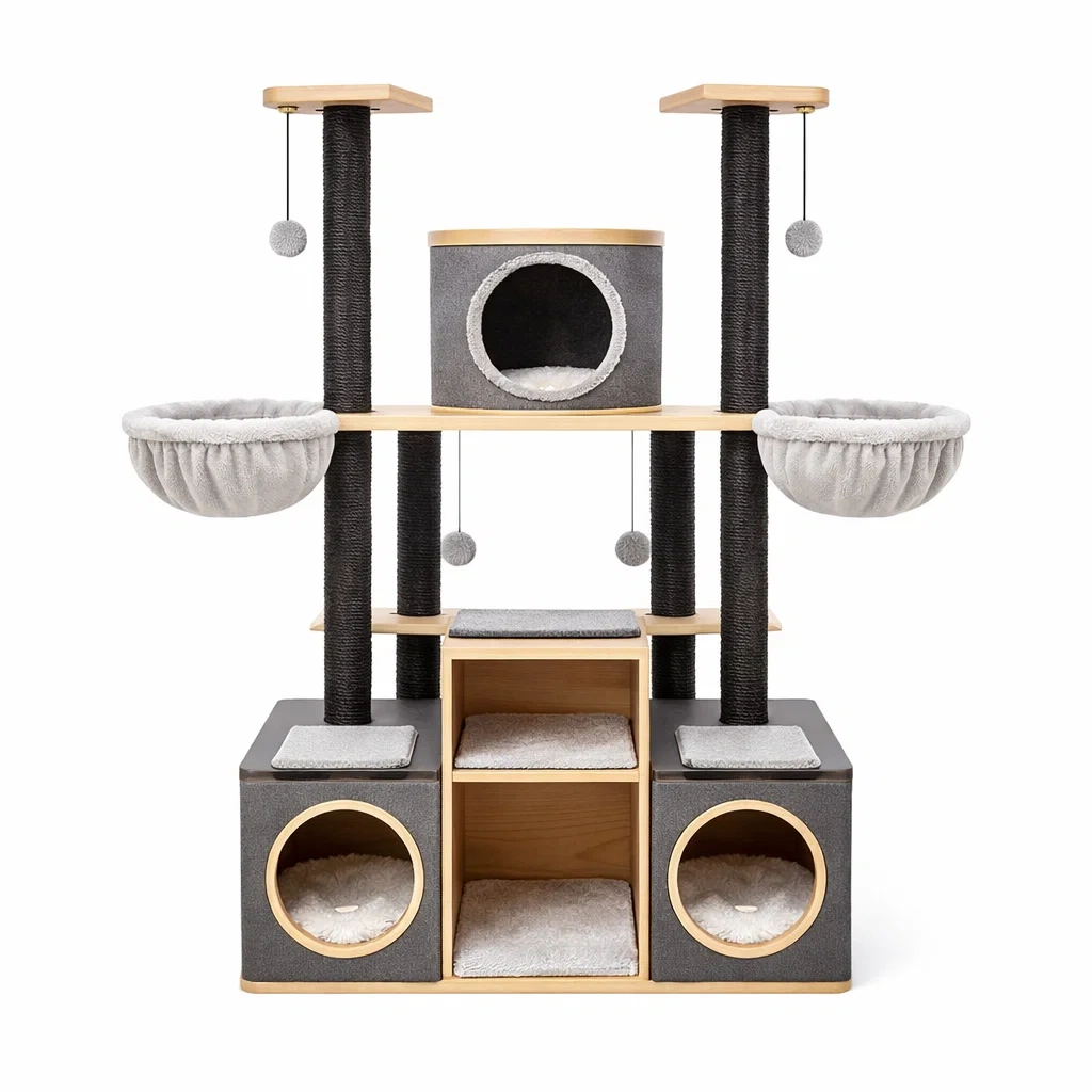Arbre à chat en bois et sisal gris