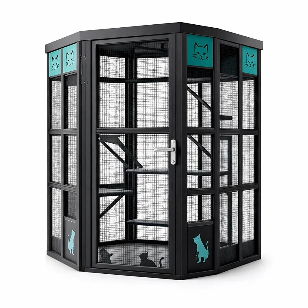 Enclos pour chat extérieur en métal avec motifs de chat noir