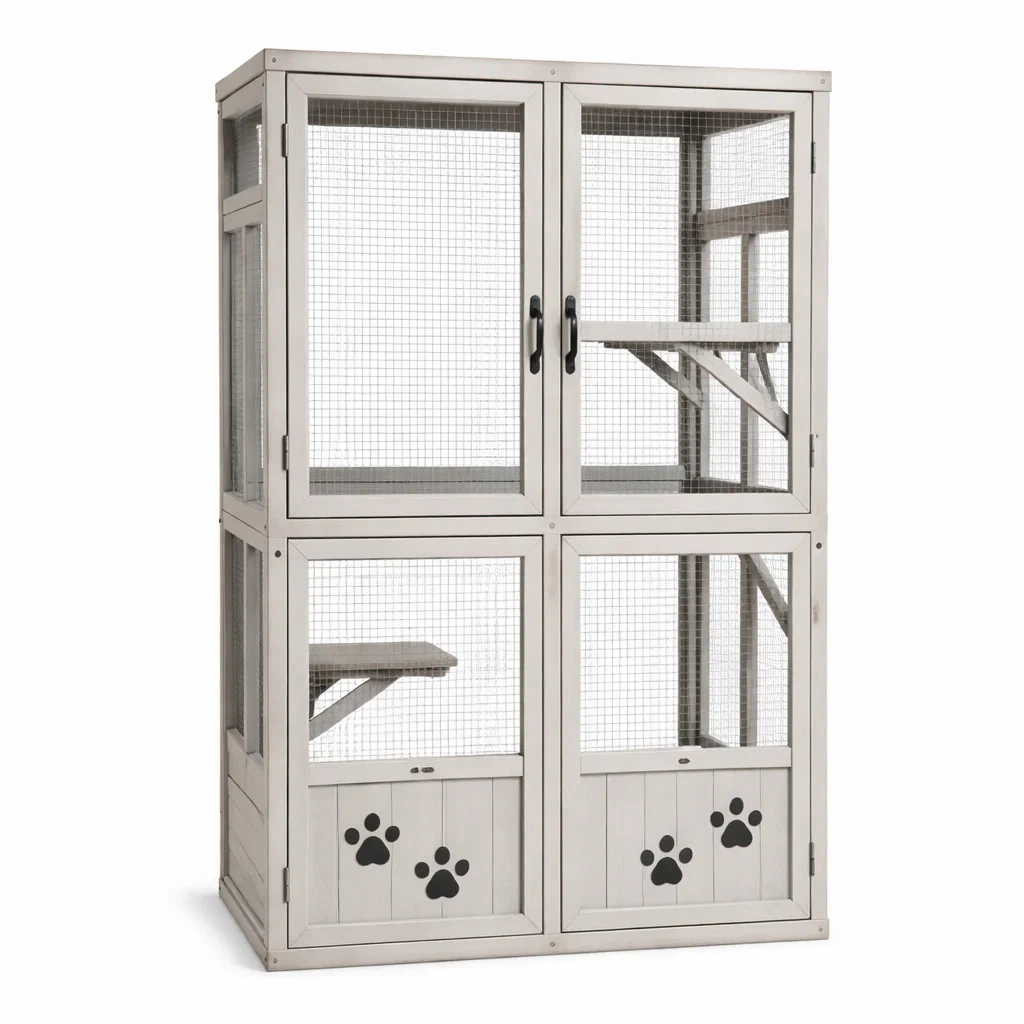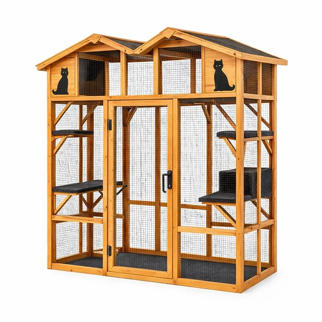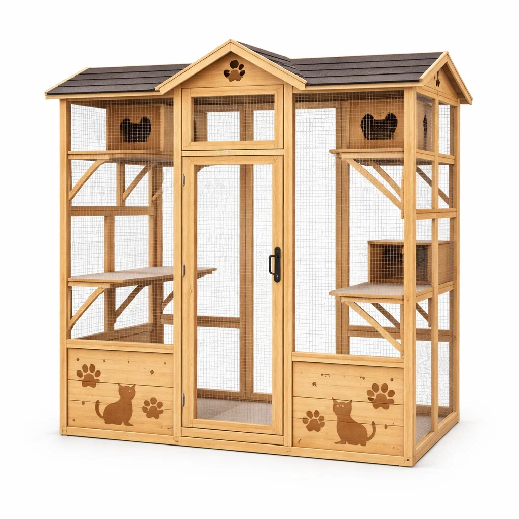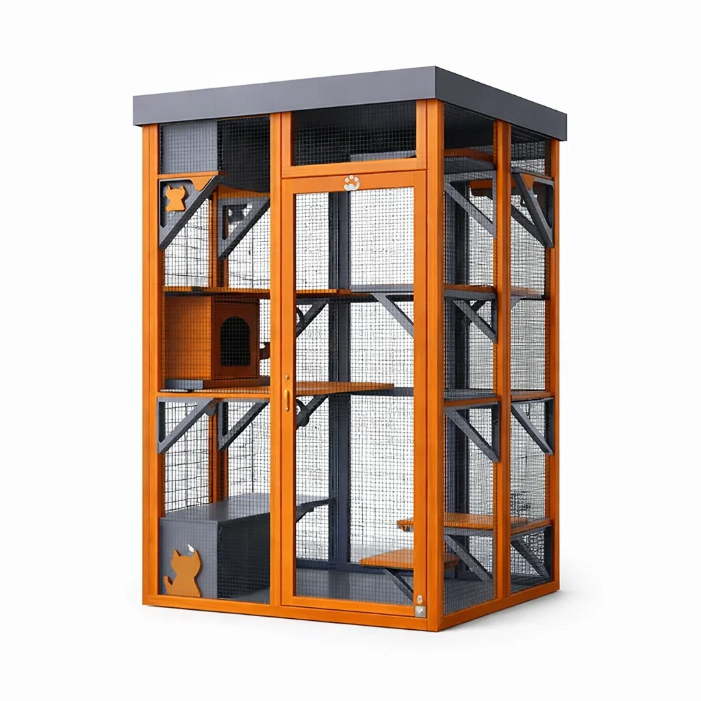 Enclos pour chat en bois de pin avec toit et porte grillagée