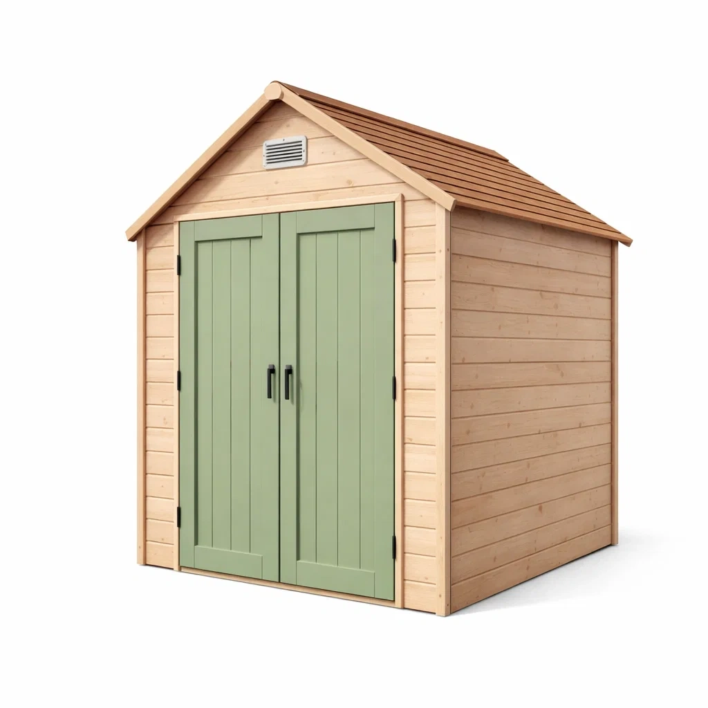 Abri de jardin en bois de sapin avec portes vertes 200x150x210 cm