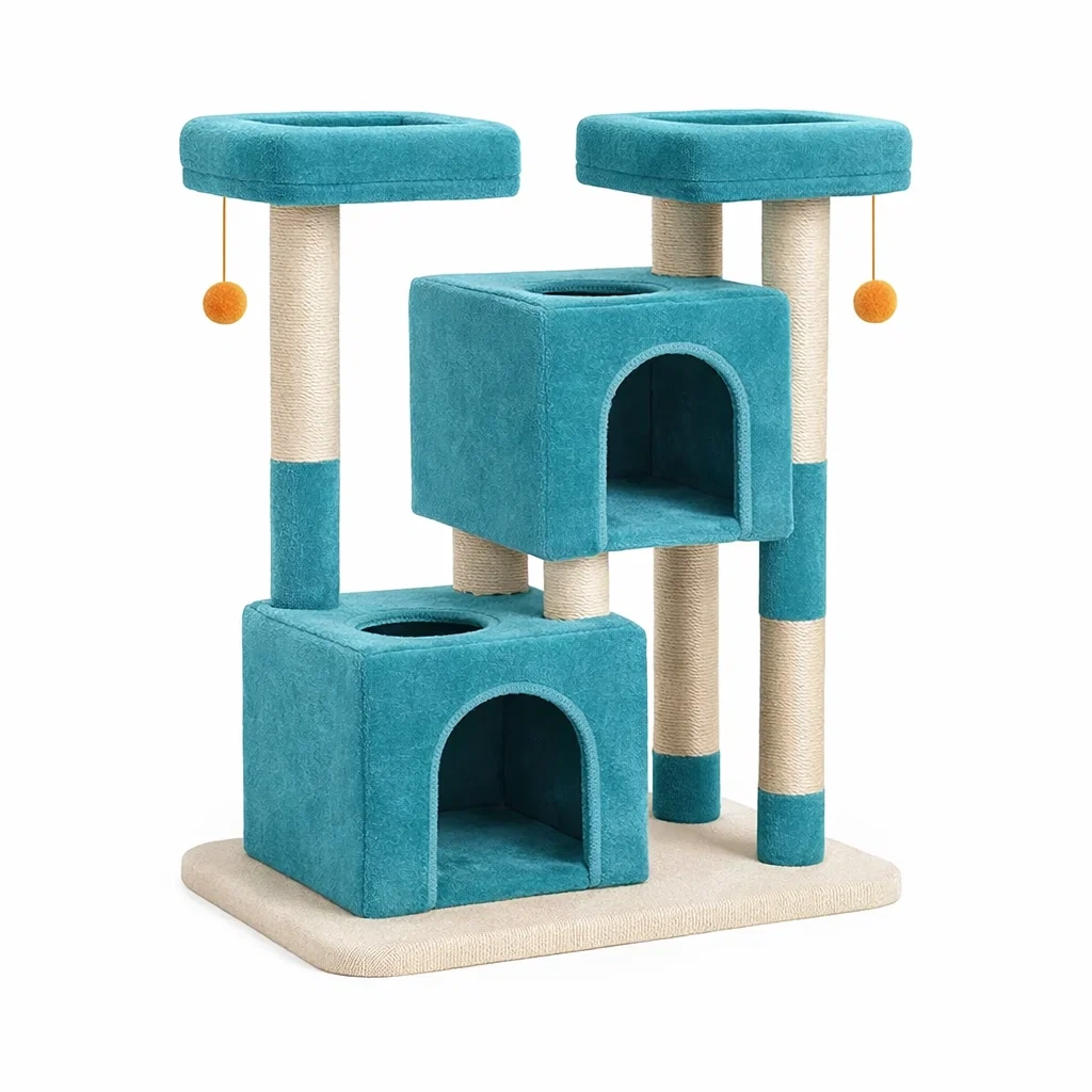 Il comprend deux niches pour le repos, plusieurs plateformes, et des poteaux recouverts de sisal.