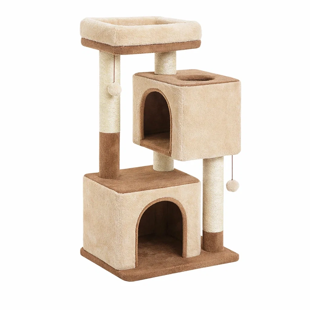 - Caractéristiques Techniques : Comprend deux niches et une plateforme supérieure, poteaux en corde sisal