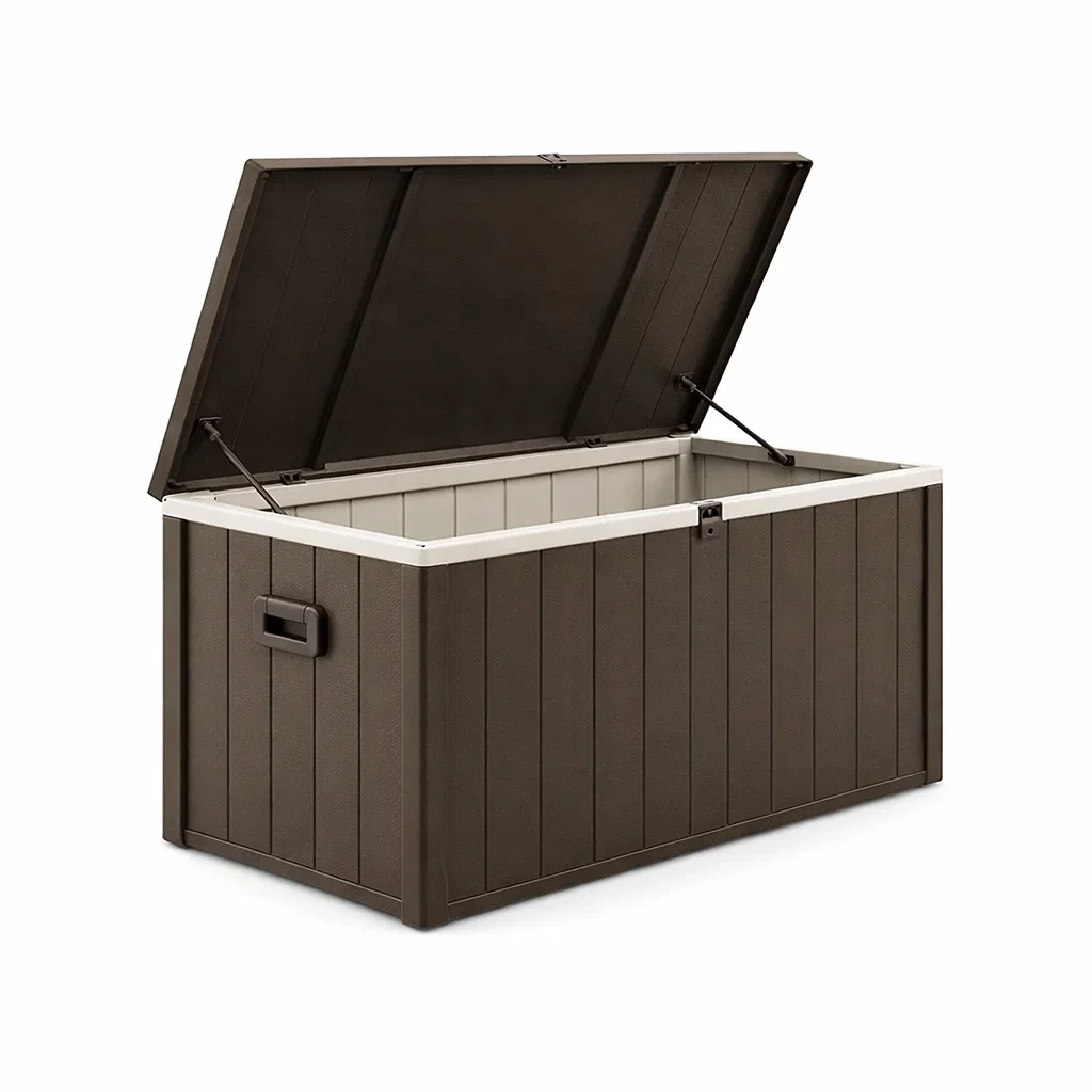 Équipé d'une ouverture à charnière et de poignées latérales intégrées, ce coffre est résistant aux intempéries et peut être sécurisé grâce à un mécanisme de verrouillage possible. Il offre une excellente résistance à l'eau.