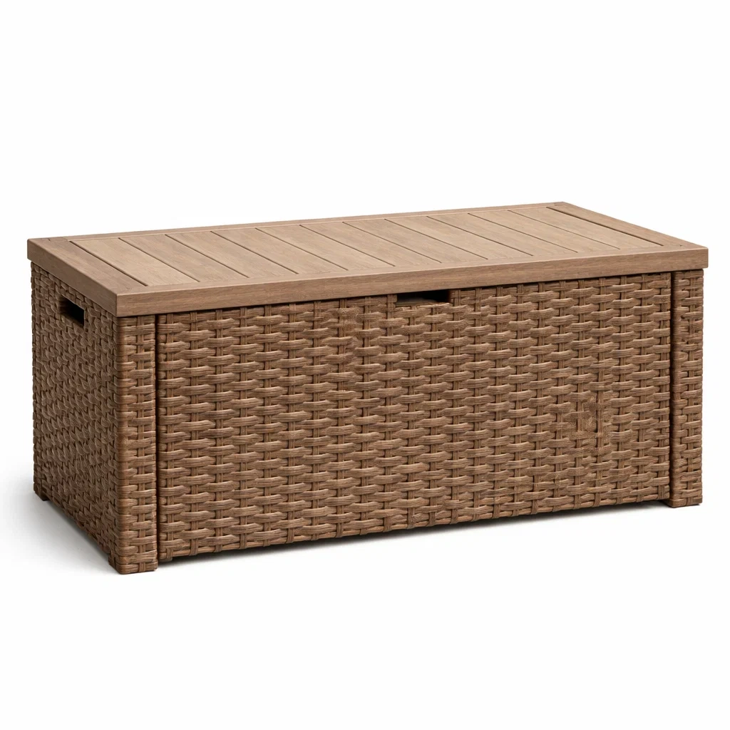Coffre de rangement extérieur en résine tressée et polypropylène 117x45x57 cm