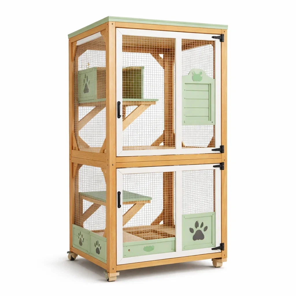 Enclos pour chat en bois d’épicéa et métal 180x90x60 cm